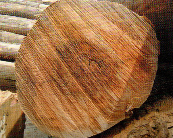 心邊材區(qū)別不明顯。木材淺粉紅褐色至淺紅褐色。生長輪不明顯。